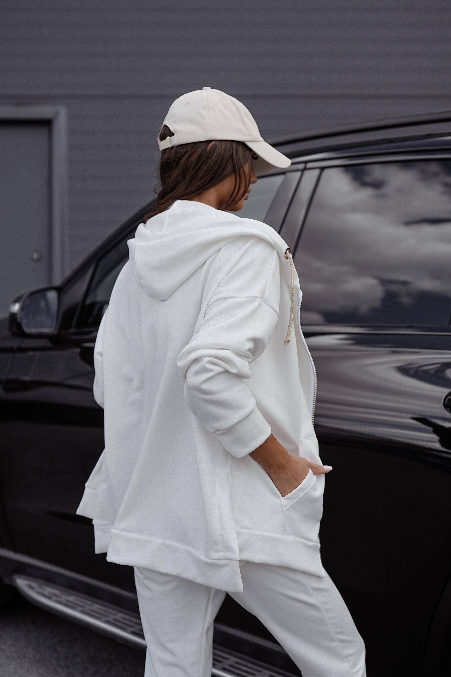 Bawełniana bluza o lekko asymetrycznej, oversize’owej formie to połączenie komfortu i nowoczesnego designu. Wykonana z wysokiej jakości, miękkiej bawełny, zapewnia wygodę noszenia przez cały dzień. Model zapinany na zamek, z praktycznym kapturem, świetnie sprawdzi się w codziennych stylizacjach. Idealna do jeansów, legginsów czy spodni dresowych — dla kobiet ceniących luz i modny wygląd.