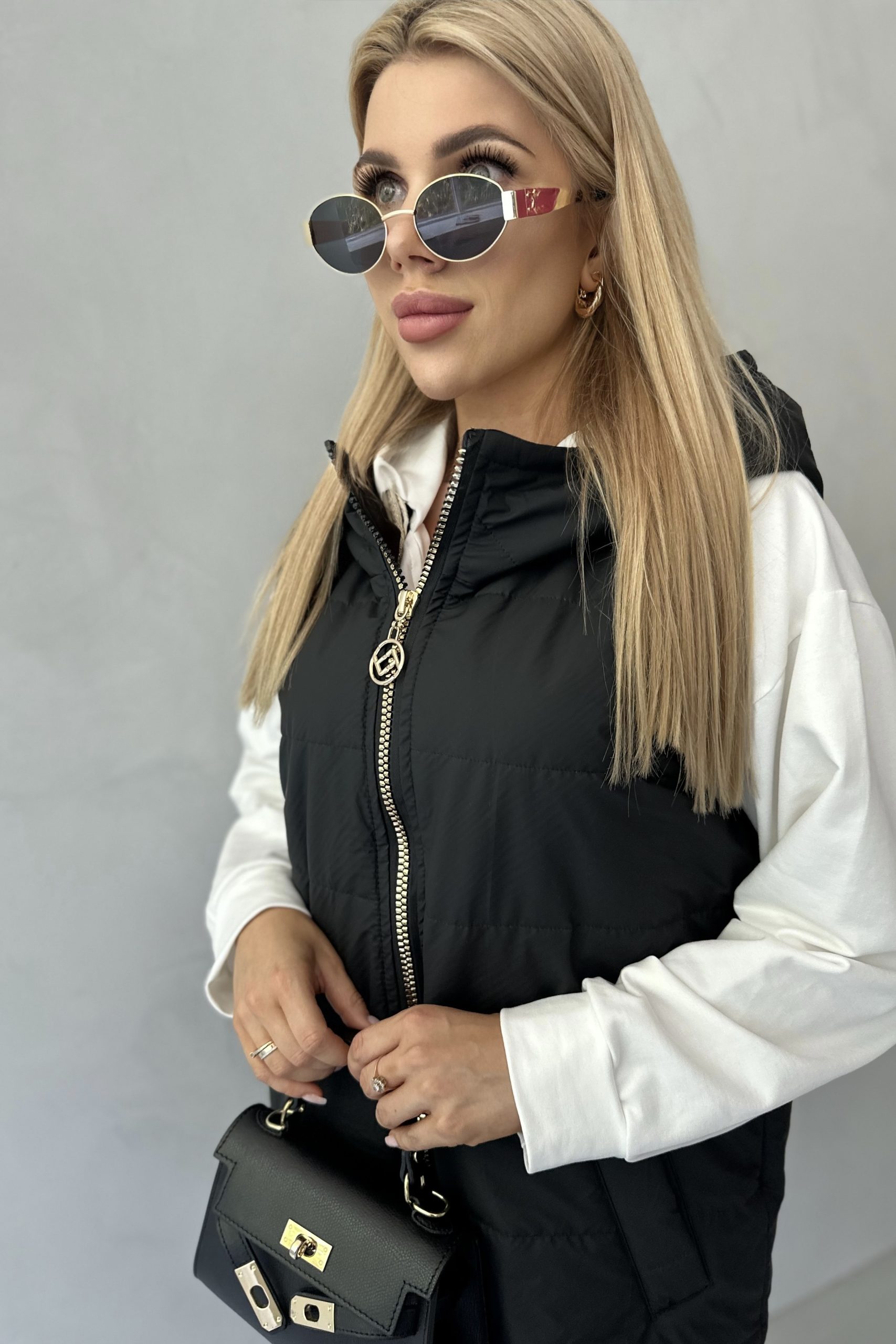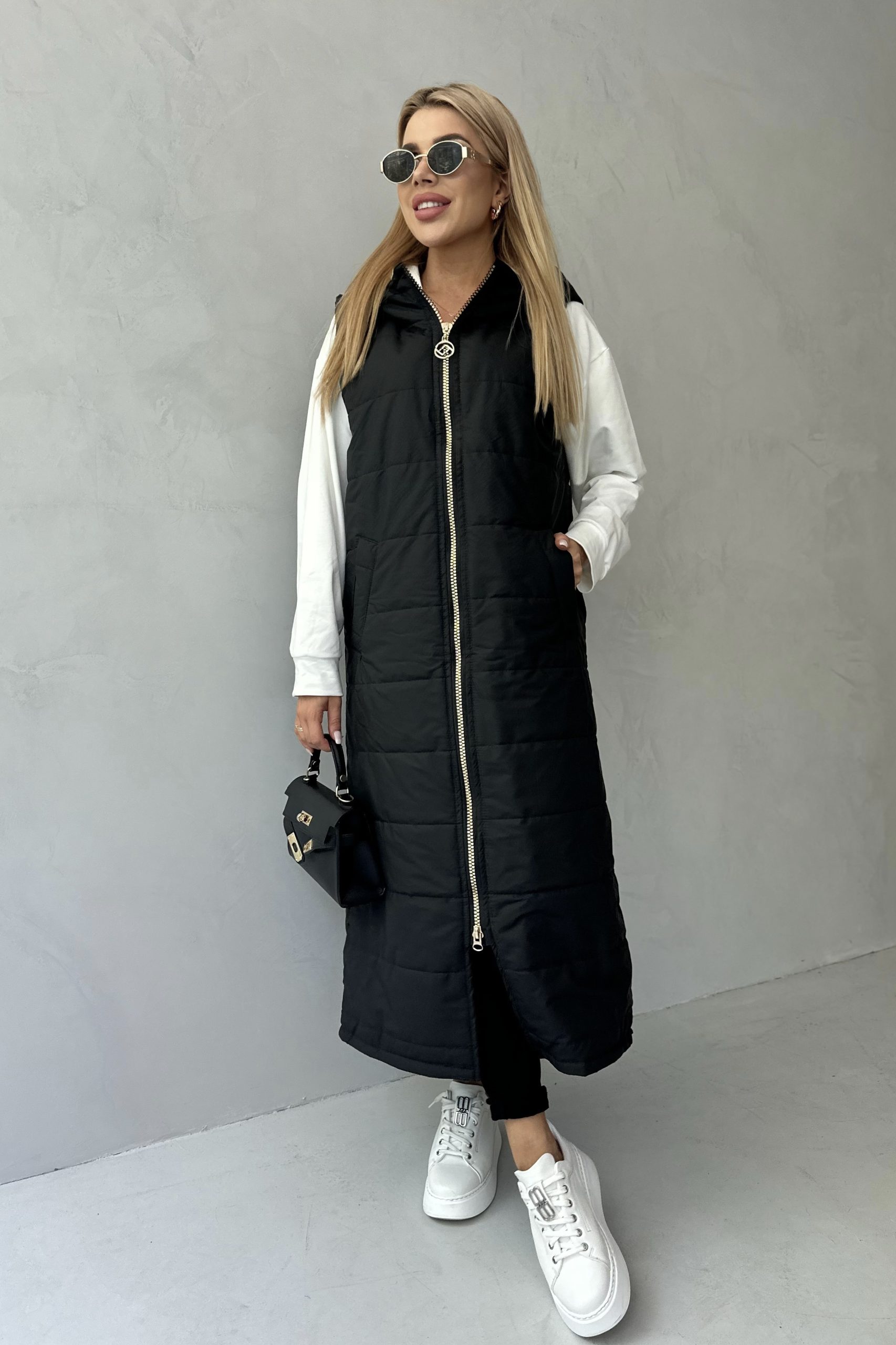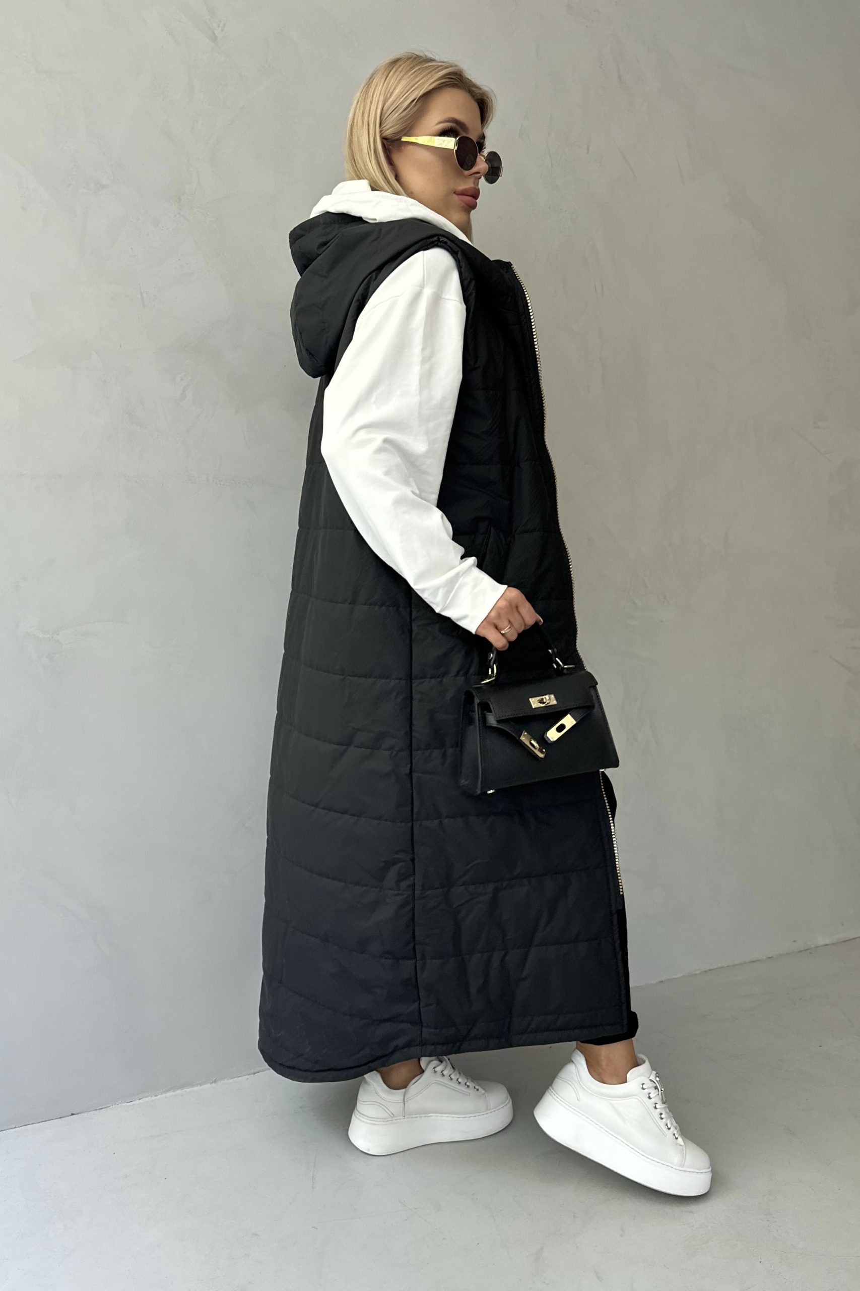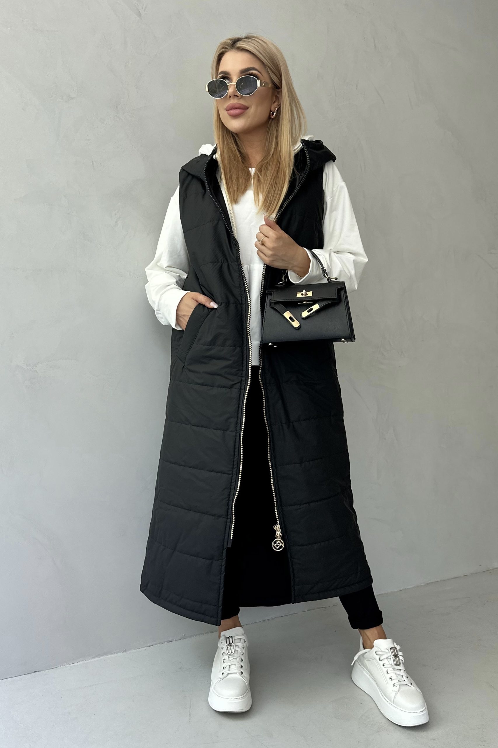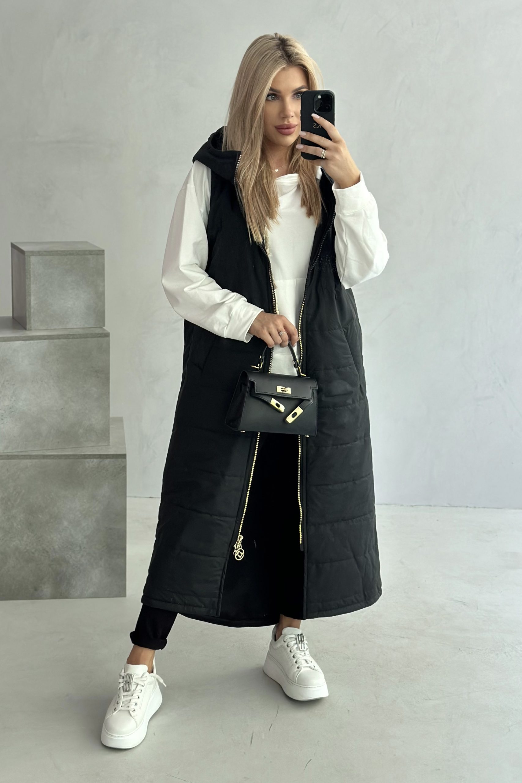 GLAMOUR MAXI LONG kamizelka, czarny mat