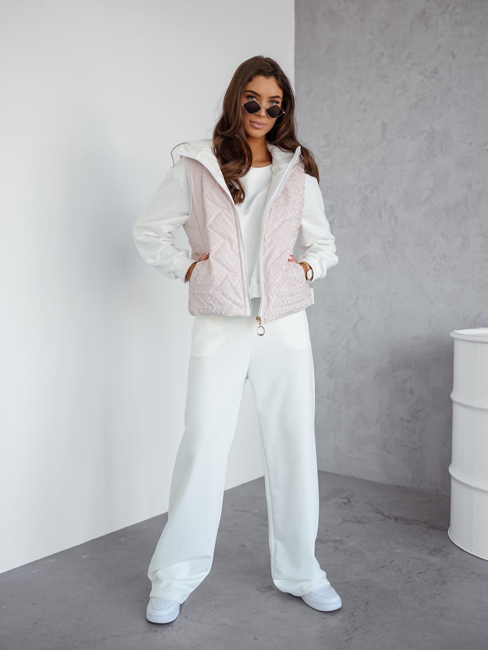 Prosta, uniwersalna forma z kapturem, funkcjonalnymi kieszeniami i stylowym zamkiem sprawia, że bezrękawnik doskonale sprawdzi się zarówno w codziennych, jak i bardziej wyrafinowanych stylizacjach.