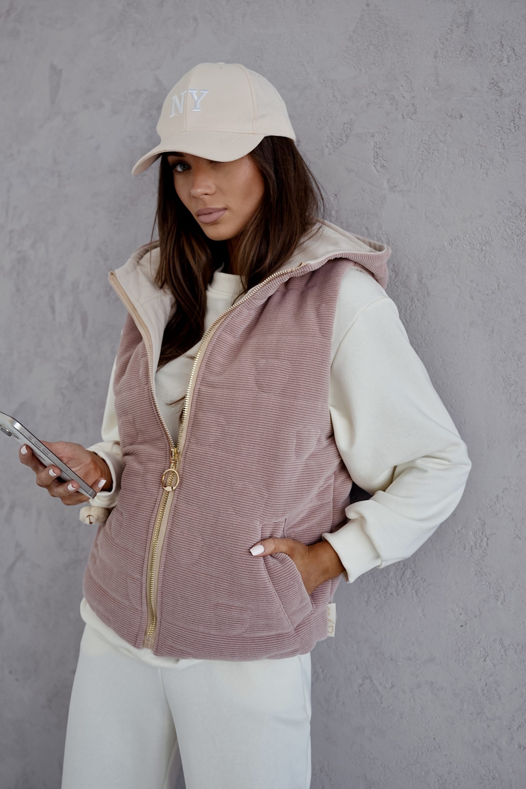 Prosta, klasyczna forma zapewnia komfort noszenia i łatwość stylizacji, a praktyczny kaptur oraz kieszenie podnoszą funkcjonalność kamizelki. Idealna na chłodniejsze dni, świetnie komponuje się zarówno z casualowymi stylizacjami, jak i bardziej eleganckimi zestawami.